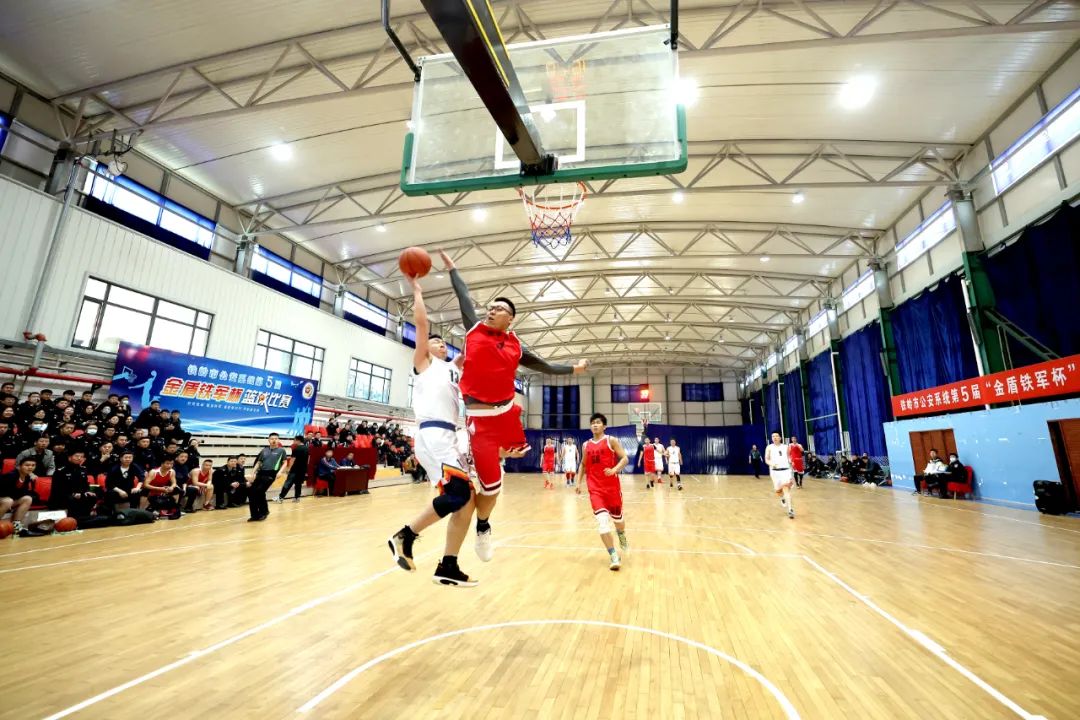 开幕赛中,裁判员的一声哨响和高高抛起的篮球昭示着“金盾铁军杯”篮球比赛。
