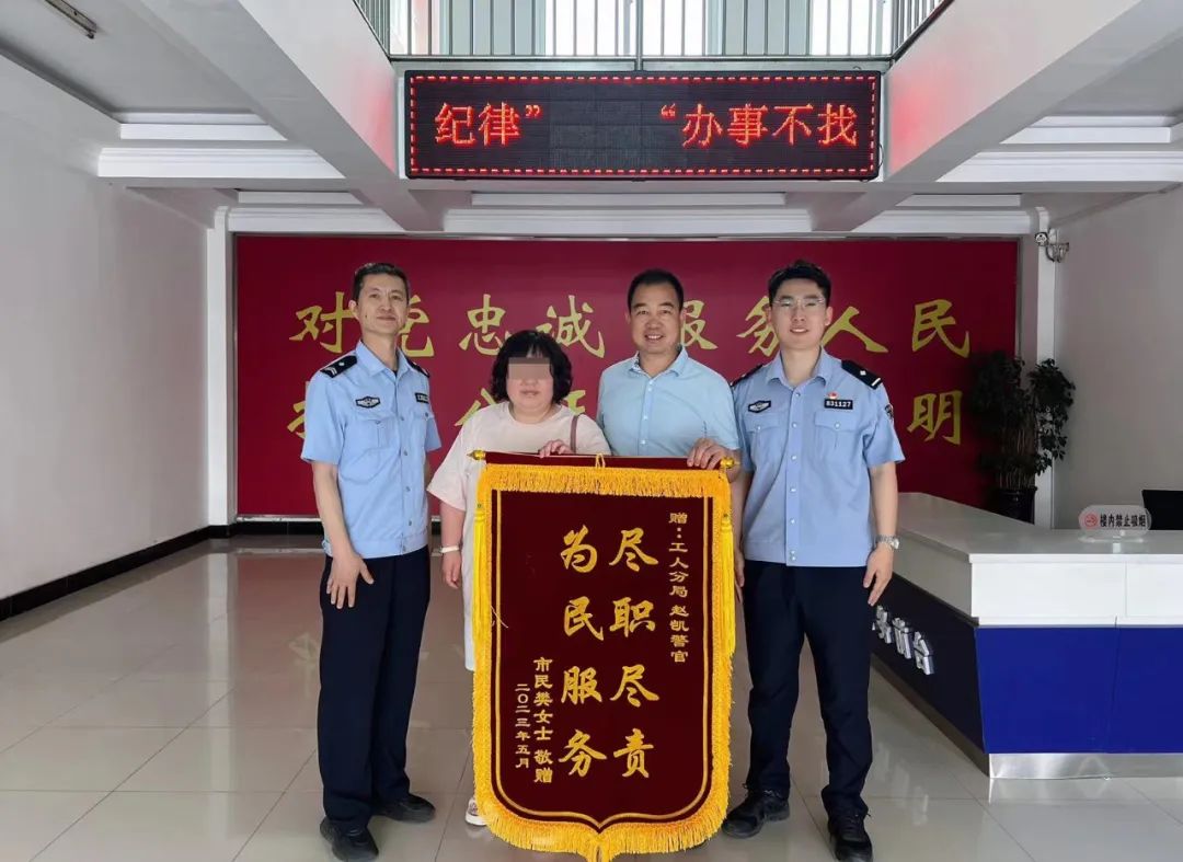 近日,报警人张女士将一面印有“尽职尽责 为民服务”的锦旗送到工人分局的民警手中,以表达民警帮其找回手机的感激之情。